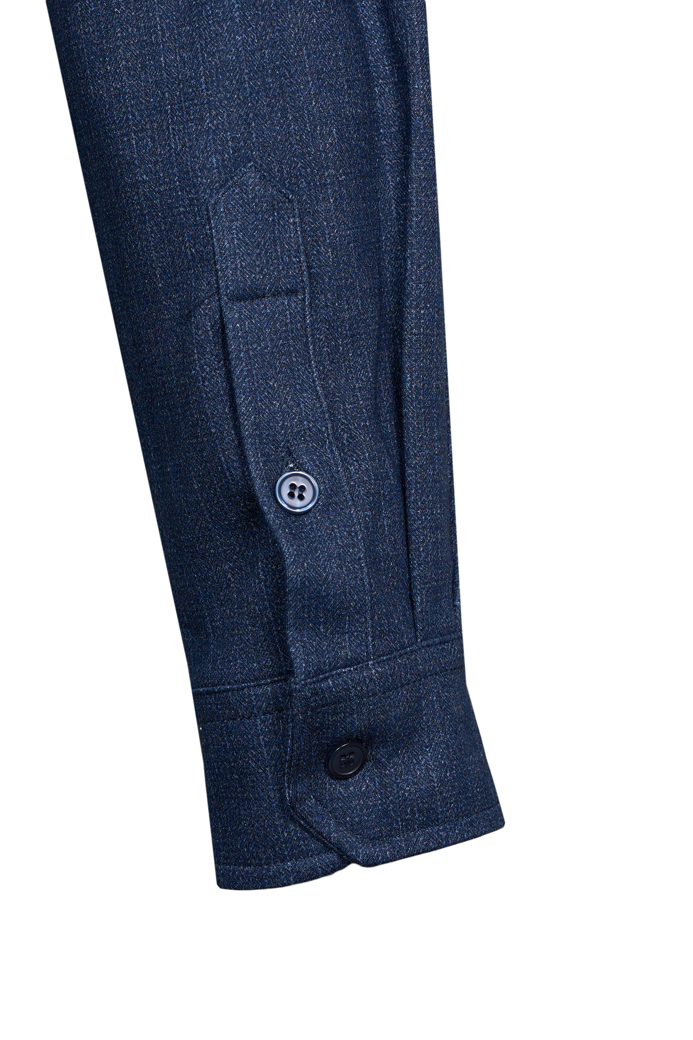 Рубашка выполнена по инновационной технологии с использованием двух типов материалов: внутренняя сторона, соприкасающаяся с телом, изготовлена из натурального хлопка, обеспечивающего комфорт и воздухопроницаемость, а внешняя часть — из смеси вискозы, полиэстера и спандекса для сохранения формы и устойчивости к сминанию.