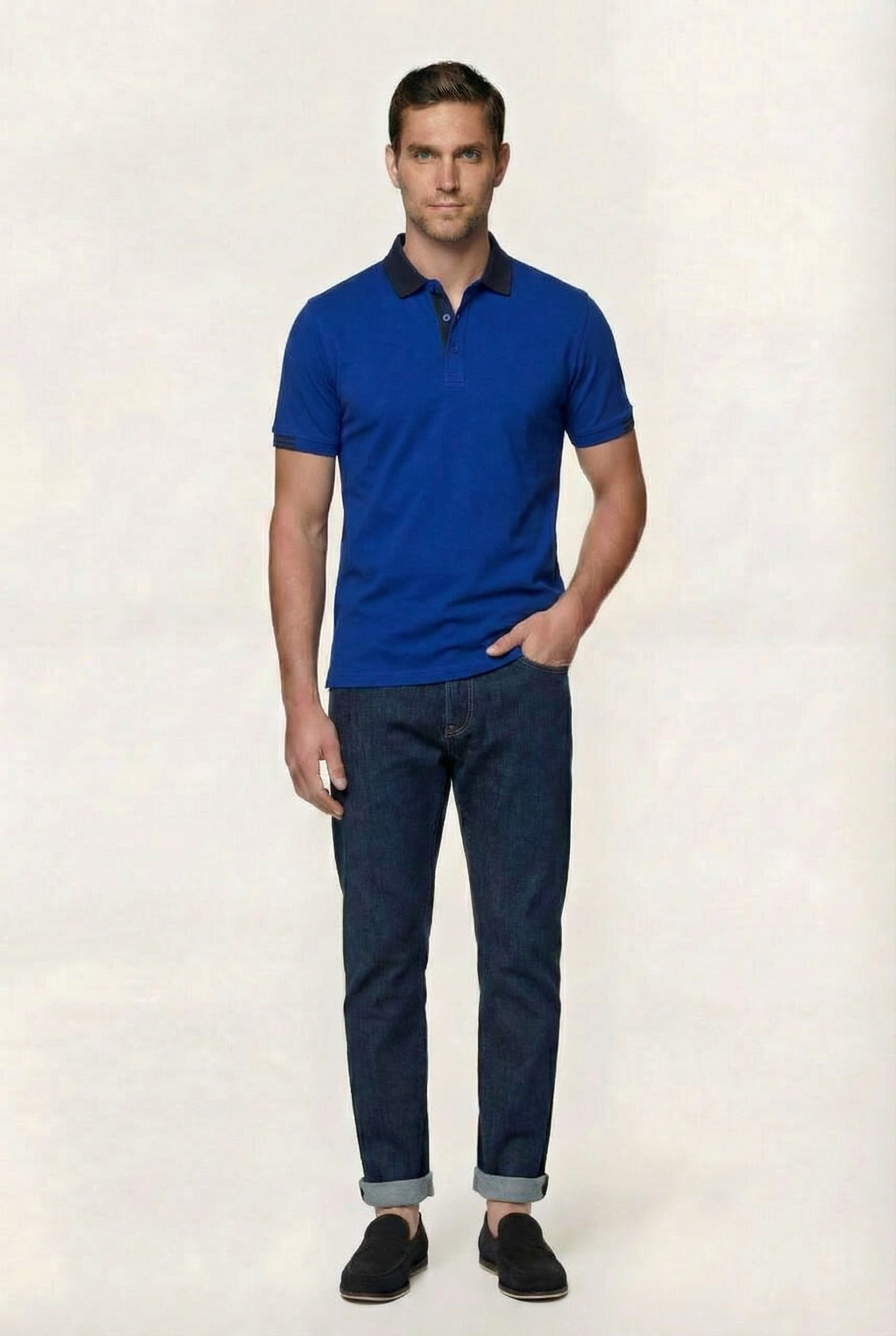 • Поло из высококачественного хлопка с добавлением вискозы. Воротник отложной. Внутренняя часть ворота обработана хлопковой тканью (препятствует изнашиванию). Застежка на три пуговицы. Без кармана. По бокам предусмотрены разрезы.